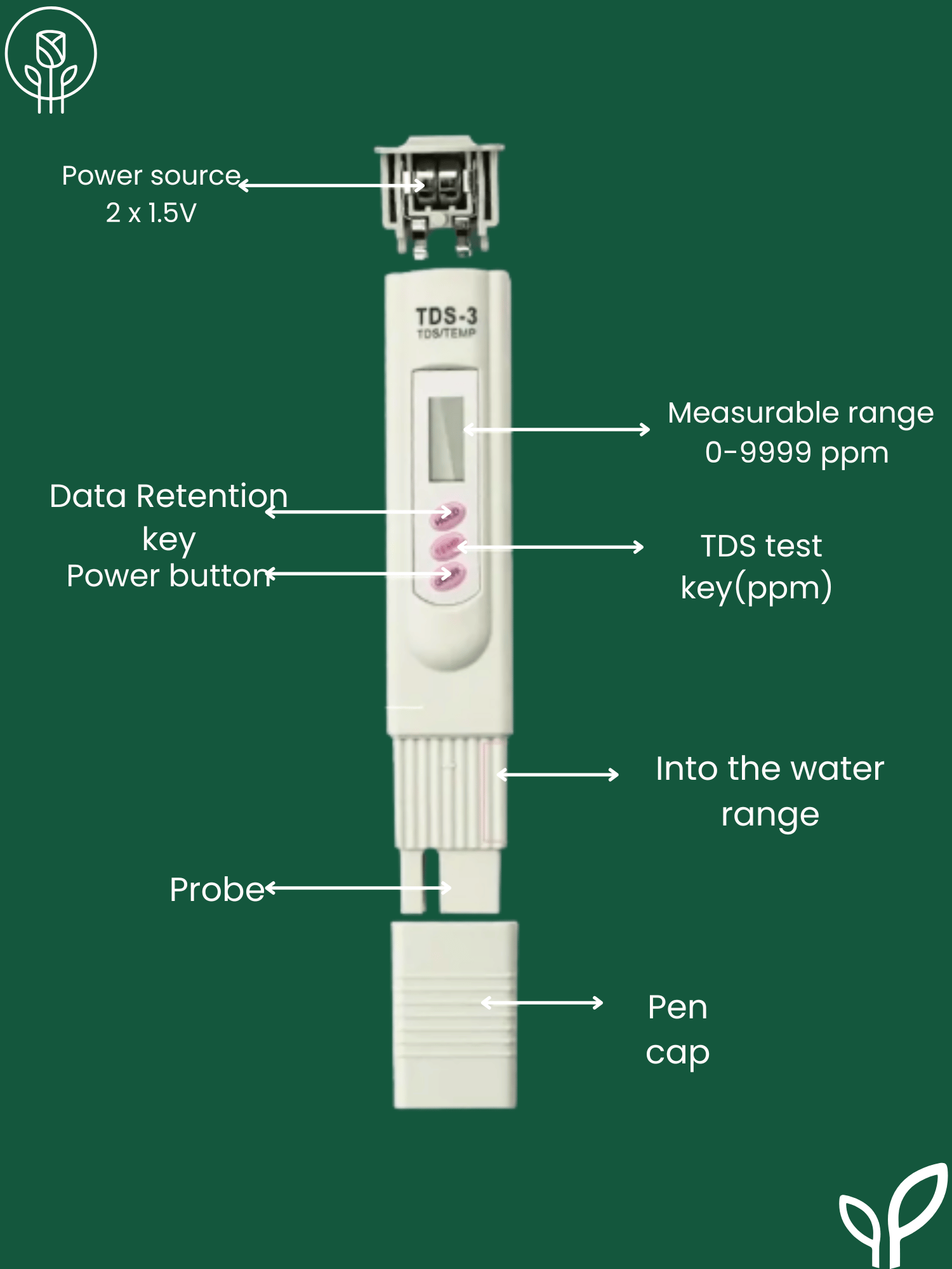 Quick and accurate measurement of TDS and temperature. -